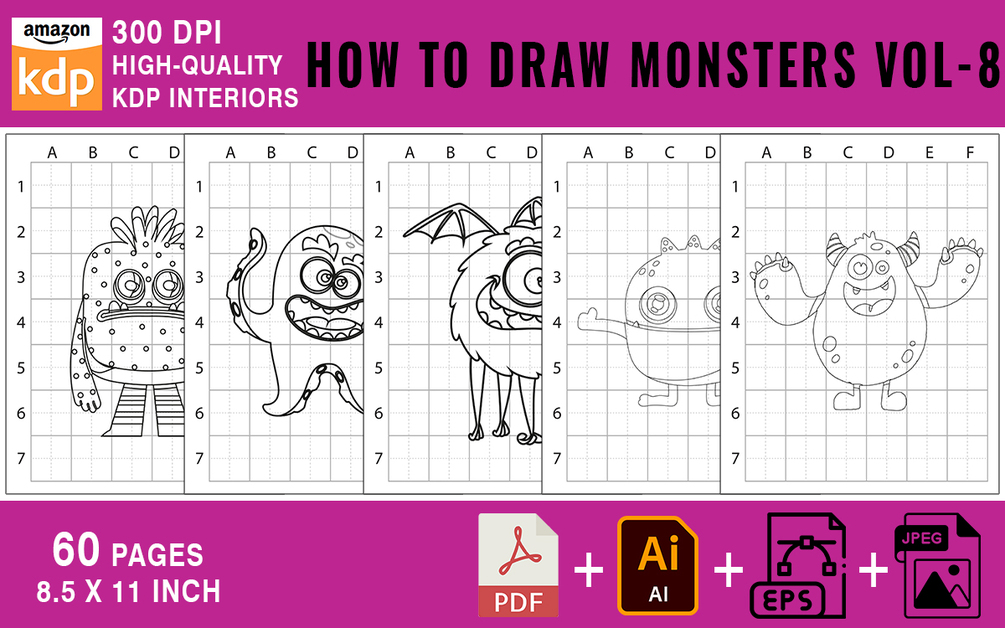 You’ll get Monsters Drawing Book With Ai File (Open Source for Edit)